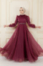 Bordo Tül Elbise
